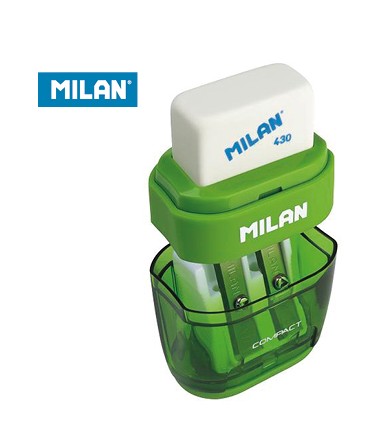 Ořezávátko a guma MILAN 2v1 s plastovým krytem - z jedné strany ořezávátko, z druhé strany guma. Ořezávátko je pro 2 tužky a je ideální do školy, vhodné jak na grafitové tužky tak i na barevné. Příjemné na dotyk.