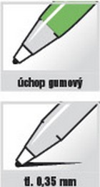 Kuličkové pero s mačkací mechanikou triopen s černou, červenou a modrou náplní síle stopy 0,35 mm. Náhradní náplně BKSS7. Vhodné pro každodenní psaní, při propisování. Tenká stopa, pogumované držení.