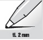Permanentní popisovač s tekutým inkoustem, má až 3 x delší výdrž než běžný, dobře drží na savých i nesavých površích, kulatý hrot 2 mm, kulaté tělo. Výhodou tekutého inkoustu je - vizuální a sluchová kontrola stavu inkoustu, sací vlastnosti 100% do poslední kapky inkoustu jako např. u kuličkového pera - možnost nepřetržitého psaní v jakékoliv poloze.