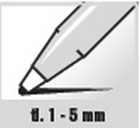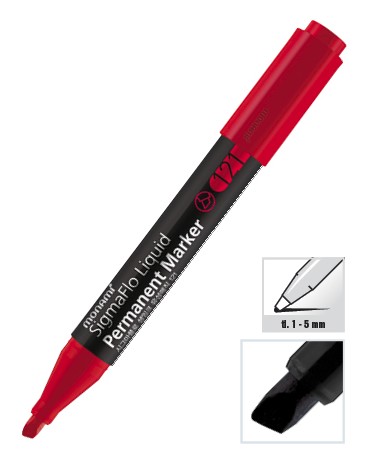 Permanentní popisovač s tekutým inkoustem, má až 3 x delší výdrž než běžný, dobře drží na savých i nesavých površích, seřízlý hrot 1-5 mm, kulaté tělo. Výhodou tekutého inkoustu je - vizuální a sluchová kontrola stavu inkoustu - psací vlastnosti 100% do poslední kapky inkoustu jako např. u kuličkového pera - možnost nepřetržitého psaní v jakékoliv poloze.