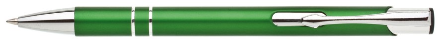 ALBA je velmi oblíbená hliníková reklamní tužka. Matné středně zelené tělo se dvěma stříbrnými proužky a chromovými doplňky.