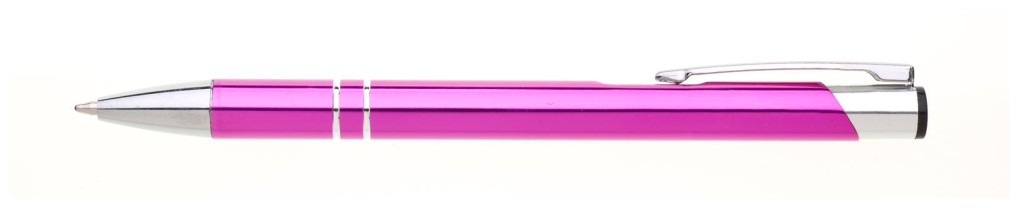 ORIN je velmi oblíbená hliníková reklamní tužka. Lesklé, magenta tělo se dvěma stříbrnými proužky a chromovými doplňky.