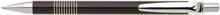 Kuličkové pero LAURIA je vyrobeno z hliníku. Má černé tělo se stříbrnými doplňky jako jsou špička, klip a cvakátko. Úchopová část má 10 stříbrných proužků po celém obvodu tužky. Náplň- X20, modře píšící.