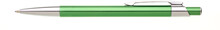 Kovová zelená propiska s lesklým povrchem a charakteristickou protáhlou špičkou. Špička i klip jsou pochromované.