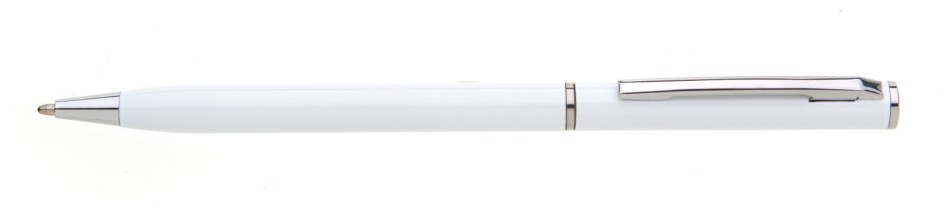 Tenká propiska s otočným mechanismem o rozměrech 130x 7,5 mm. Materiál hliník, náplň modře píšící.
