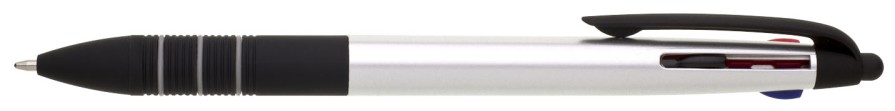 Plastová propiska 3 v1 pod názvem SARNO stříbrná píše modře, černě a červeně.Grip je v černé barvě a pogumovaný. Náplň X20 - 88 mm.
