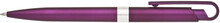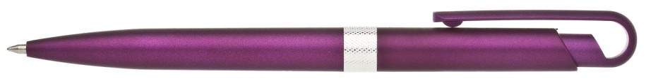 Plastové, kuličkové pero FIROL má fialové, metalické tělo se stříbrným rýhovaným proužkem uprostřed. Náplň velkoobsahová, modře píšící. Kolekce DESIGN.