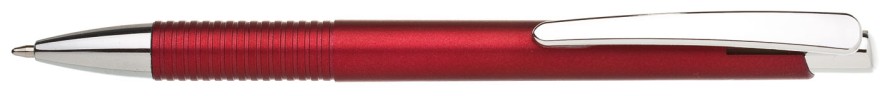 Plastové, kuličkové pero LASTI má červené, metalické tělo s rýhovaným úchopem a pochromovanou špičkou, klipem a cvakátkem. Náplň X 20- 106 mm, modře píšící.