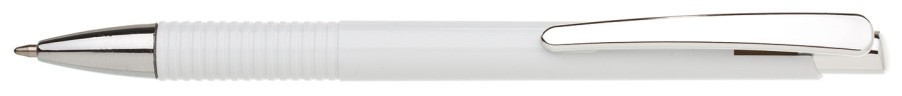 Plastové, kuličkové pero LASTI má bílé tělo s rýhovaným úchopem a pochromovanou špičkou, klipem a cvakátkem. Náplň X 20- 106 mm, modře píšící.