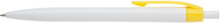 Plastové, kuličkové pero LIDO má bílé tělo a žlutý klip. Má náplň X-20 (106mm), modře píšící.