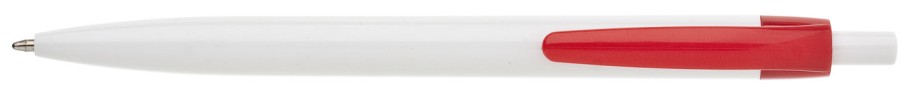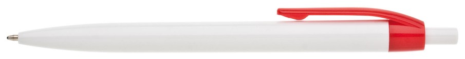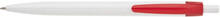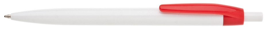 Plastové, kuličkové pero LIDO má bílé tělo a červený klip. Má náplň X-20 (106mm), modře píšící.