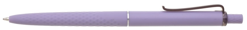 Tenká světle fialová propiska má 3D soft povrch ve spodní části, horní část propisky je hladká, vhodná pro umístění loga, Obě části odděluje tenký stříbrný kroužek. Klip je průhledný v barvě propisky. Kolekce DESIGN. Náplň X20 modře píšící.