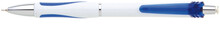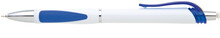 Bílá, plastová propiska s pochromovanými doplňky jako jsou klip, tělo cvakátka a proužek uprostřed těla tužky. Grip je tmavě modrý, částečně pogumovaný, stejně jako klip. Náplň X20, hrot 0,5mm.