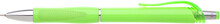Neonová zelená plastová propiska s transparentním klipem a stříbrnými doplňky. Náplň X20 s mikrohrotem 0,5 mm, semi gel,modře píšící.