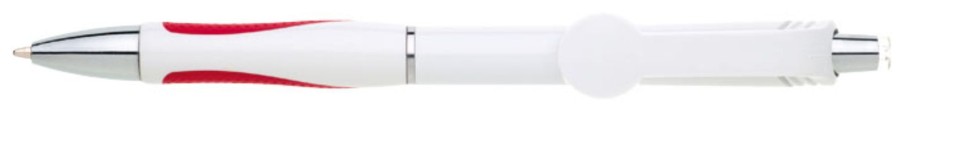 Varianta oblíbené propisky s rozšířeným klipem ve tvaru kola vhodným pro plnobarevný UV potisk. Gumový grip je v červené barvě. Značka GABRIELIS. Náplň X-20, hrot 1 mm, modře píšící.