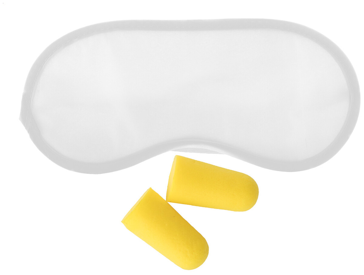 Cestovní sada s maskou na oči z mikrovlákna a špunty do uší z materiálu EVA.