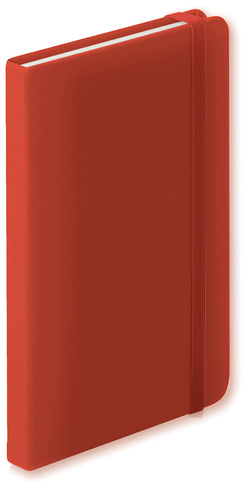 Blok s deskami z PU kůže, se 100 linkovanými listy, záložkou a gumičkou. Velikost A6.