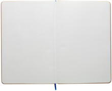 Blok s deskami potaženými recyklovaným kartonem se 100 čistými listy, barevnou záložkou a gumičkou.