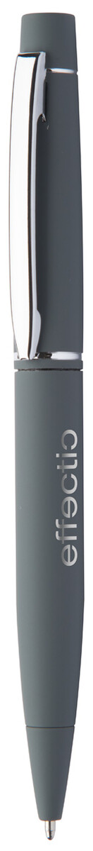 Kovové twist kuličkové pero s pogumovaným povrchem a modrou náplní. Speciální povrch pro laser stříbrného loga.