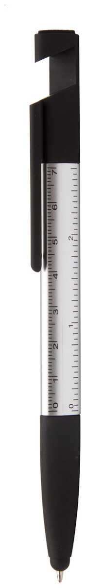 Plastové kuličkové a dotykové pero 5v1 se stojánkem na mobil, pravítkem, čistítkem a s funkcí šroubováku, s modrou náplní.