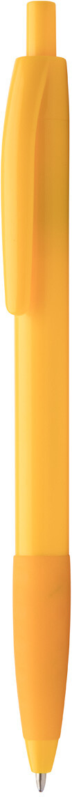 Plastové kuličkové pero se stejně barevným gumovým úchopem, s modrou náplní.