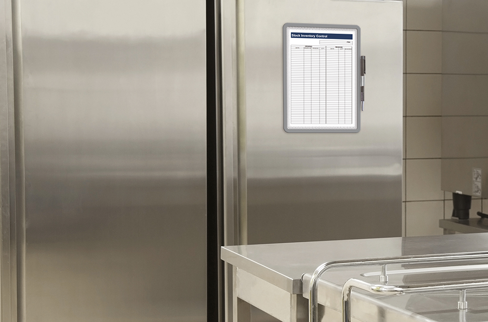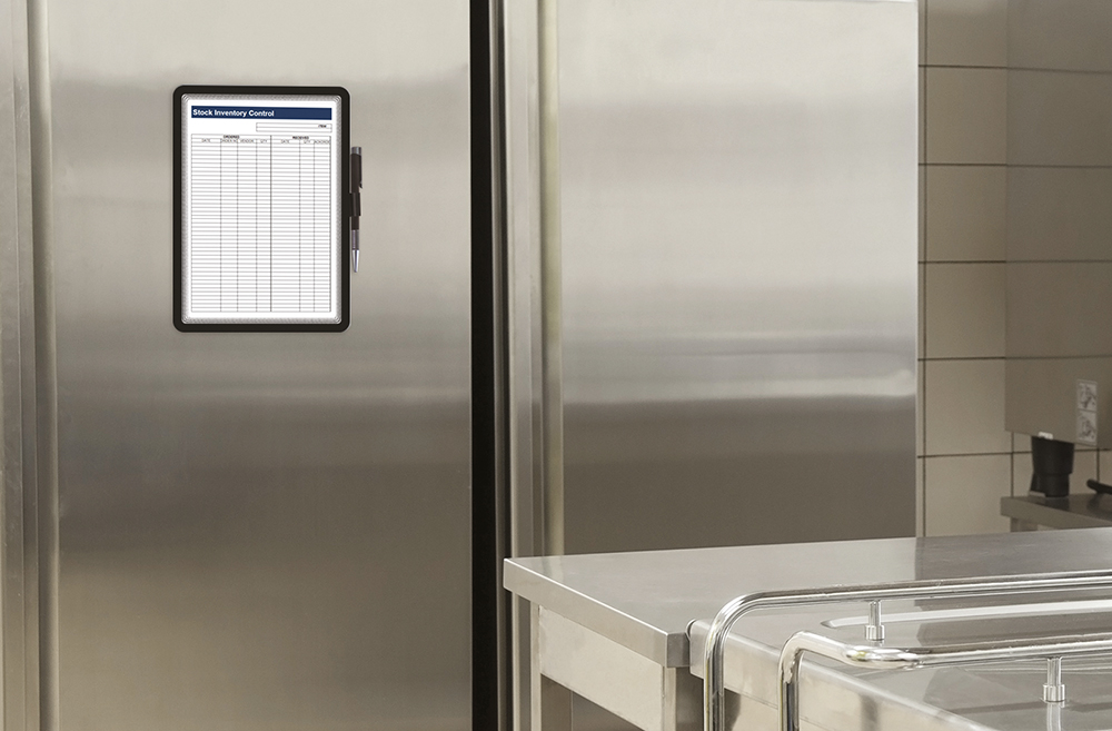 Oboustranný barevný rámeček určený do budov a provozů s potřebou vyplnění evidence. Pevný rámeček s magentickými lemy fixuje ze tří stran vložený dokument a volný prostor umožňuje vepsání informací. Praktický úchyt na pero na boční hraně. Rámeček je oboustranně viditelný, ideální pro umístění na prosklenou plochu a využít také zadní stranu k další komunikaci. Pro dokumenty formátu A4. Balení: 1 kus.