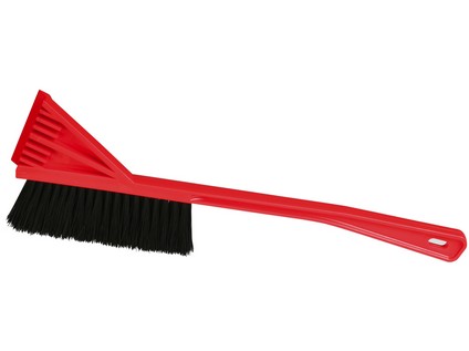 Autoškrabka se smetáčkem na sníh a dlouhou rukojetí.