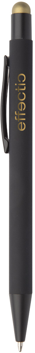 Hliníkové kuličkové a dotykové pero s pogumovanou úpravou a speciálním povrchem pro zrcadlový laser v barvě stylusu, s modrou náplní.
