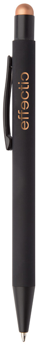 Hliníkové kuličkové a dotykové pero s pogumovanou úpravou a speciálním povrchem pro zrcadlový laser v barvě stylusu, s modrou náplní.