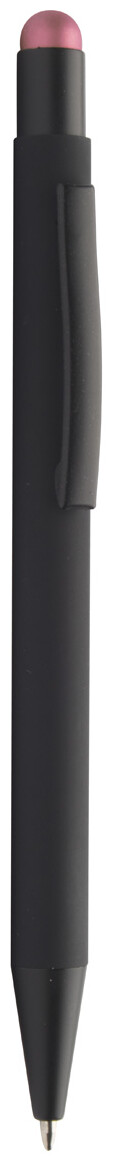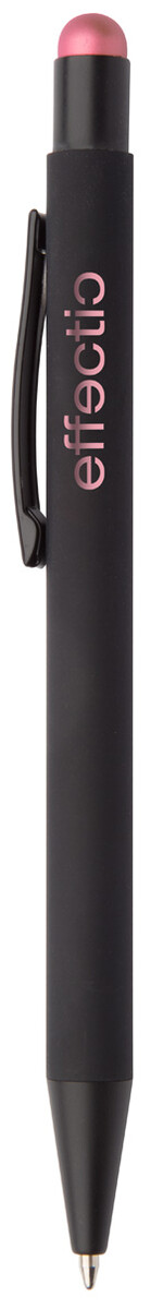 Hliníkové kuličkové a dotykové pero s pogumovanou úpravou a speciálním povrchem pro zrcadlový laser v barvě stylusu, s modrou náplní.
