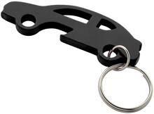 Hliníkový přívěšek na klíče ve tvaru auta s otvírákem na láhve.