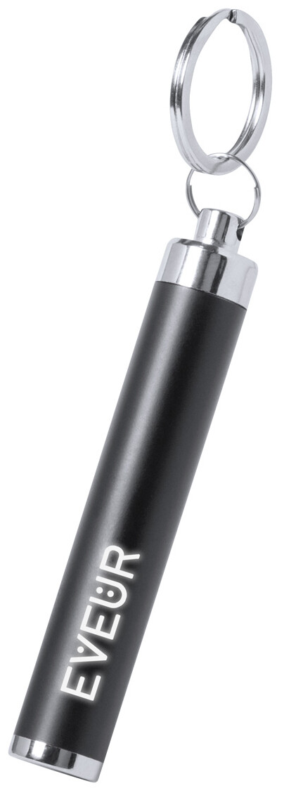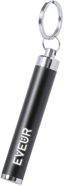 Plastová baterka s 1 LED světlem a kovovým kroužkem na klíče. Vygravírovaná loga na těle baterky svítí. Vč. knoflíkových baterií.