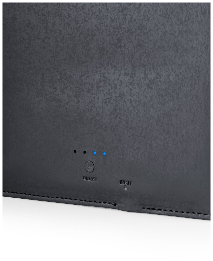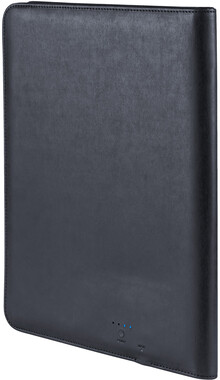 Sloha na dokumenty z PU kůže s 5000 mAh power bankou, 20 listým blokem a stojánkem na tablet. Vč. nabíjecího USB kabelu.