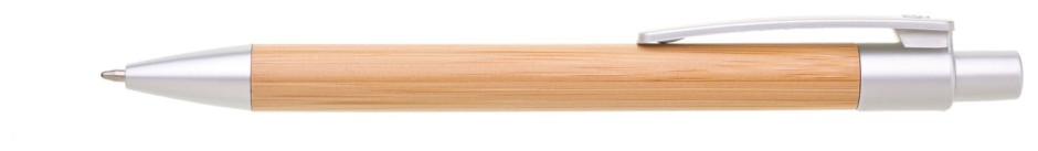 Dřevěné kuličkové pero BORGO - tělo je vyrobeno z bambusu, špička, klip a cvakátko je ze stříbrného plastu.