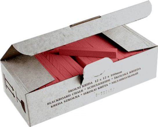 Křída školní čtyřhranná o rozměrech 12x12x100 mm, je určena pro psaní na školní tabule. Karmínové školní křídy na tabuli, 100 ks v balení