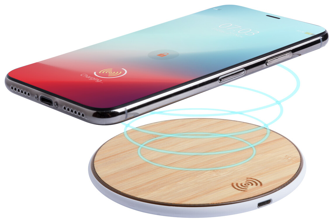 Bezdrátová nabíječka (10W) na mobil s bambusovým krytem. Vč. USB nabíjecího kabelu.