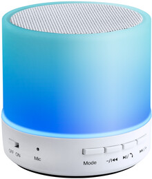 Bezdrátový reproduktor v plastovém krytu s vícebarevným LED světlem. S funkcí hands-free volání, FM rádiem a vestavěnou dobíjecí baterií. Včetně nabíjecího kabelu USB.