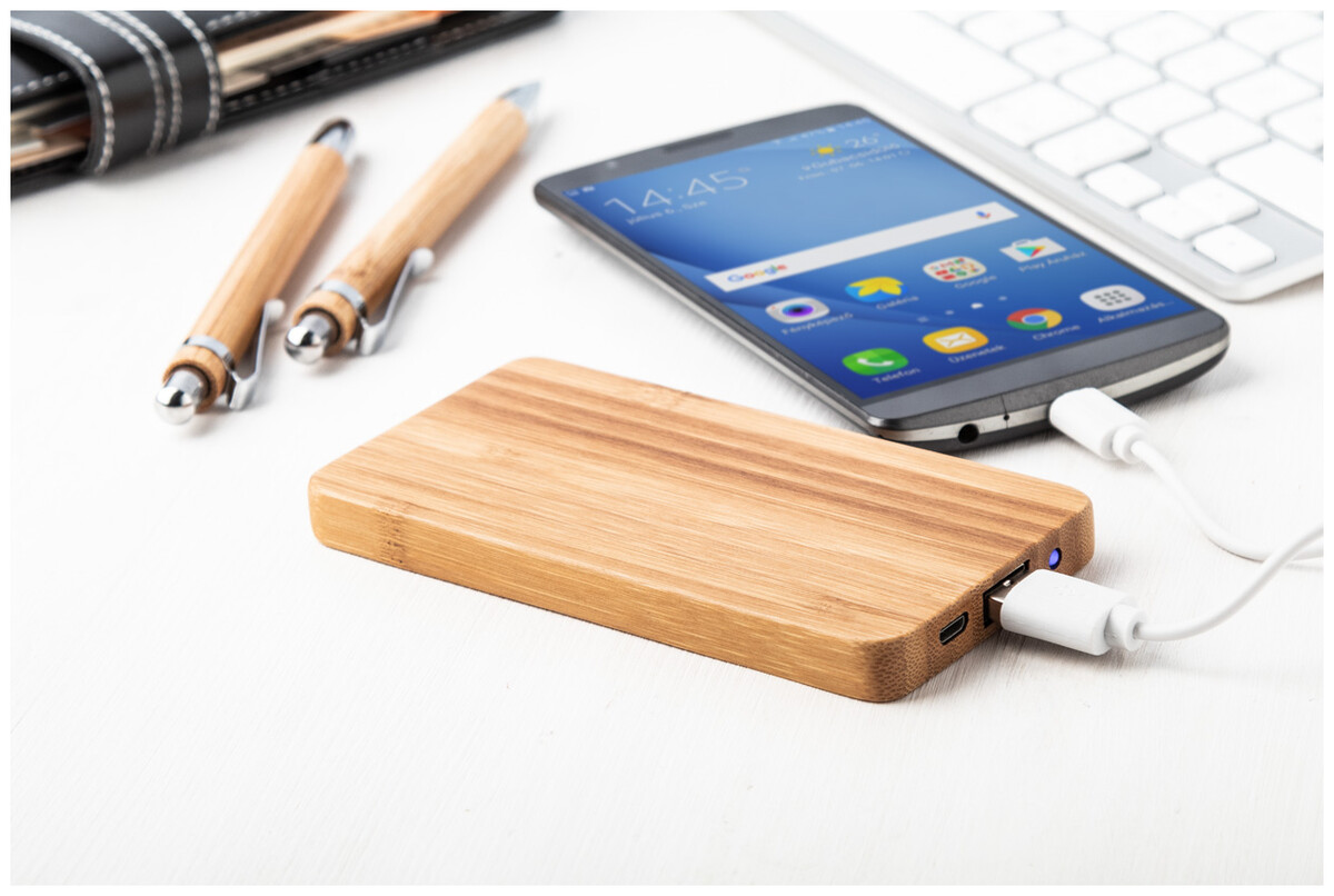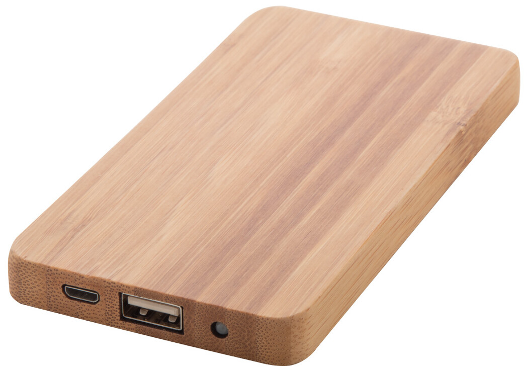 USB power banka z bambusu s 4000 mAh baterií. Vč. USB nabíjecího kabelu.