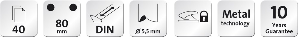 Malá bloková děrovačka. Celokovová s plastovým opláštěním. Dělené výklopné dno z měkké pryže usnadňuje manipulaci s odpadem. Aretace horního dílu pro úsporu místa při ukládání. Potištěné posuvné pravítko pro snadné formátování. Hmotnost: 790 g. Prodloužená záruka: 10 let.