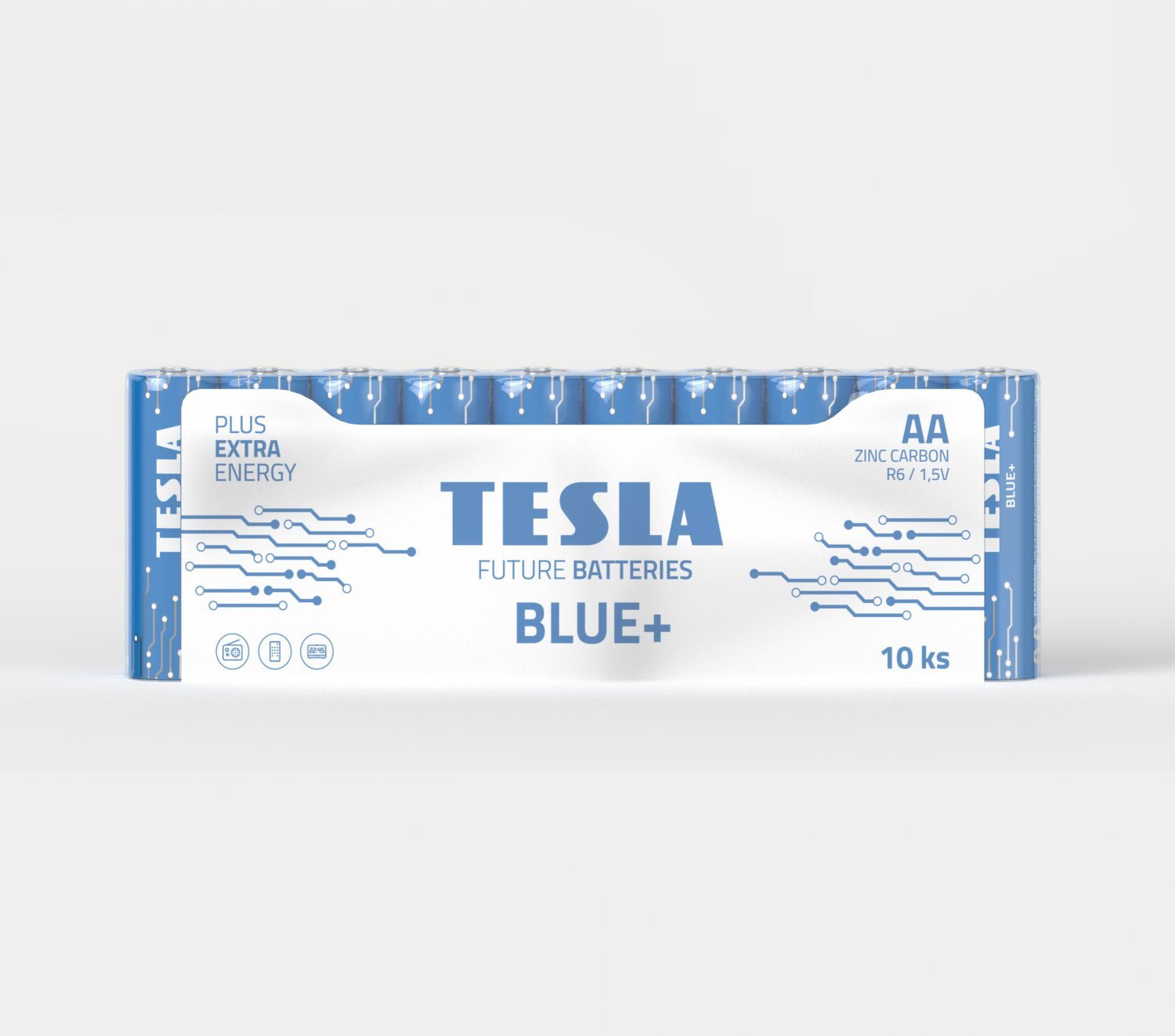 Řada TESLA BLUE+ zahrnuje zinko-uhlíkové baterie se základním napětím 1,5 V. Tyto baterie typu AA jsou vhodné především do zařízení s krátkodobým odběrem nízkého množství proudu, například do televizních ovladačů, budíků, časovačů či nástěnných hodin. Hlavním benefitem této řady je její cenová dostupnost a dlouhá výdrž.