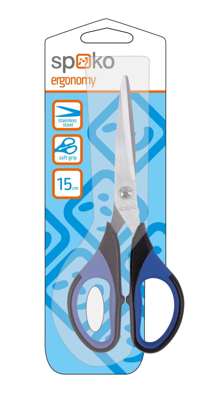 Kovové nůžky Spoko s plastovým úchytem jsou vhodné pro každodenní použití i do školy. Symetrické provedení umožňuje pohodlné používání praváky i leváky.