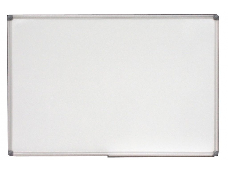 Bílá magnetická tabule 60 x 90 cm v hliníkovém rámu, popisovatelná za sucha stíratelnými popisovači, s odkládací lištou a sadou pro připevnění na zeď.