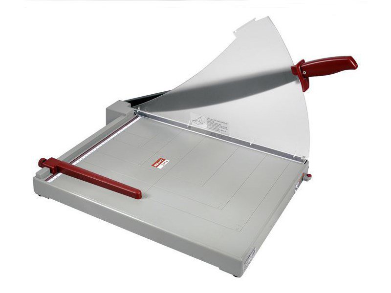 Hobby páková řezačka A3, vhodná do každé kanceláře. Tato řezačka je vybavena plastovým ochranným krytem, plastovým stolem s oděruvzdorným povrchem ABS, vyznačenými měřítky, DIN formáty a posuvným dorazem papíru se šroubovou aretací.