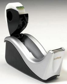 Stolní zásobník je určen pro pásku Scotch Magic 810 a je dodáván včetně lepicí pásky. Moderní design ve stříbrno-černém provedení je vhodný pro pracovní stůl v kanceláři i domácnosti.