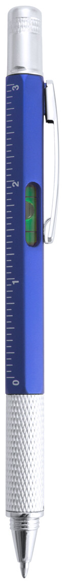 Plastové kuličkové pero s plochými a hvězdicovými šroubováky, vodováhou a pravítkem 7 cm / 3 palce. S kovovým klipem a modrou náplní.