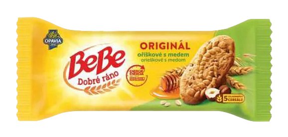 Sušenky BeBe Dobré ráno s oblíbenou oříškovo-medovou chutí obsahují celozrnné cereálie a jsou zároveň obohacené o včelí med a 6 vitamínů – vitamín B1, B2, B3, B5, B6 a kyselinu listovou.