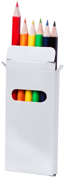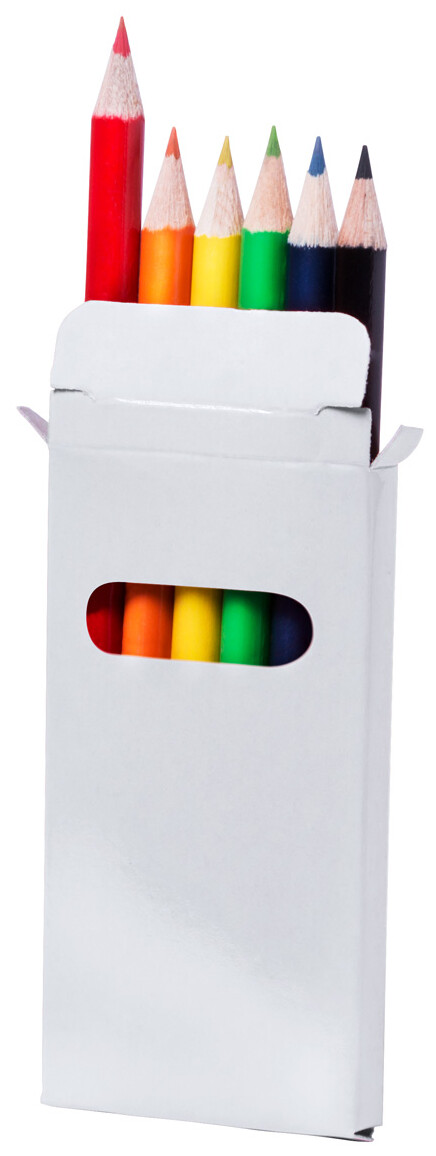 Dřevěné pastelky (6 ks) v barevné papírové krabičce.