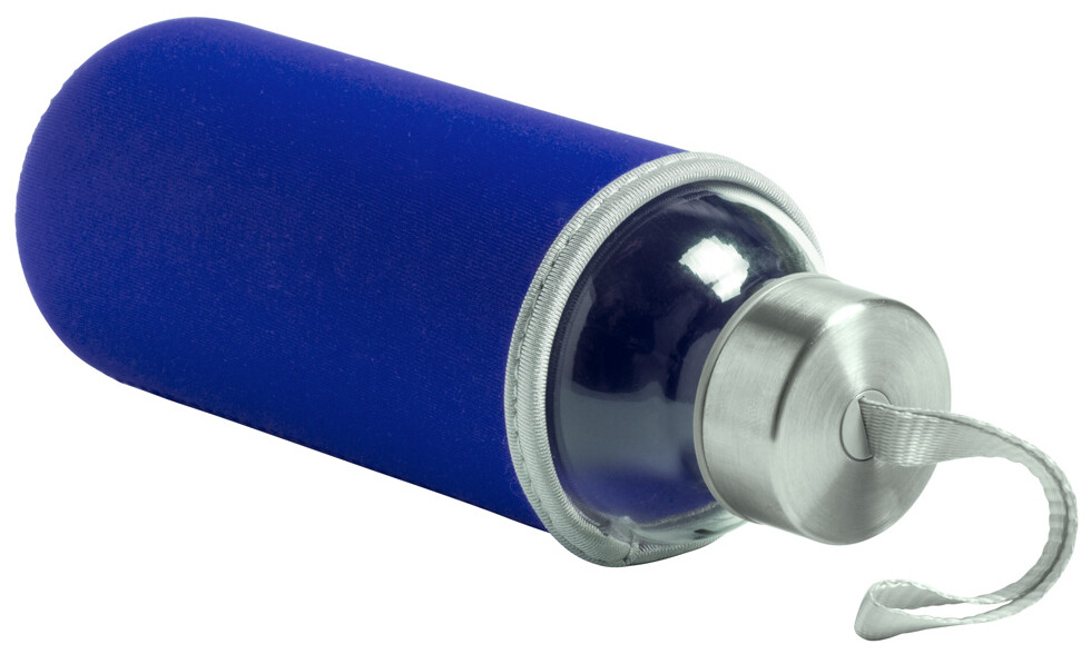 Skleněná láhev s popruhem na uzávěru a barevným neoprenovým krytem. 420 ml. Nevhodné pro sycené nápoje.