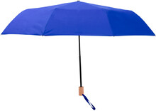 Manuální, větrudodolný skládací deštník s 8 panely ve stejně barevném pouzdře. S kovovým rámem, sklolaminátová žebra a dřevěná rukojeť. 190T RPET pongee, s etiketou s označením RPET.